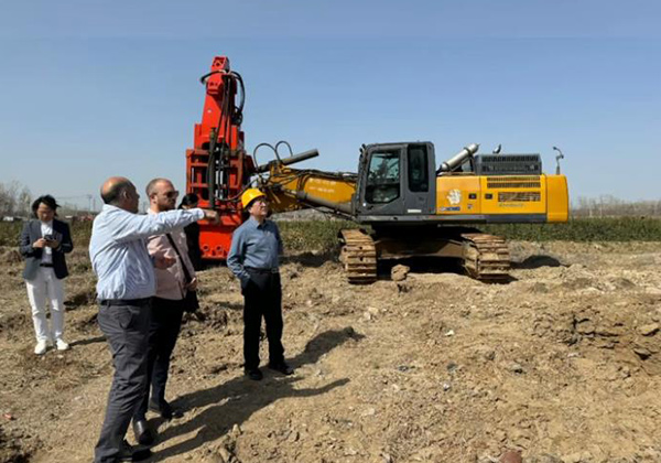 國外客戶參觀工廠并探討液壓夯HC150 HC180 并在場地觀察實際夯實效果